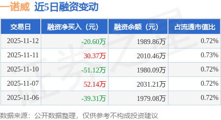 证券之星消息,11月12日,一诺威(920261)融资买入215.64万元,融资偿还236.24万元,融资净卖出20.6万元,融资余额1989.86万元,近20个交易日中有11个交易日出现融资净买入。