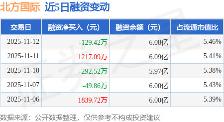 证券之星消息,11月12日,北方国际(000065)融资买入2386.61万元,融资偿还2516.03万元,融资净卖出129.42万元,融资余额6.08亿元。