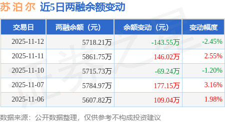 证券之星消息,11月12日,苏 泊 尔(002032)融资买入267.75万元,融资偿还411.28万元,融资净卖出143.53万元,融资余额5670.87万元。