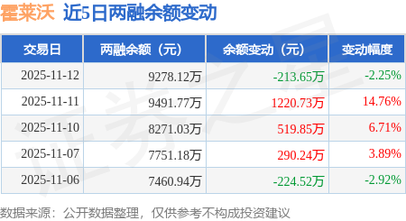 证券之星消息,11月12日,霍莱沃(688682)融资买入1222.0万元,融资偿还1435.65万元,融资净卖出213.65万元,融资余额9278.12万元。