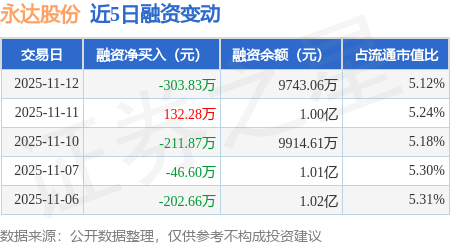 证券之星消息,11月12日,永达股份(001239)融资买入404.17万元,融资偿还708.0万元,融资净卖出303.83万元,融资余额9743.06万元。