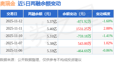 证券之星消息,11月12日,奥瑞金(002701)融资买入2148.23万元,融资偿还3044.91万元,融资净卖出896.68万元,融资余额5.35亿元,近20个交易日中有13个交易日出现融资净买入。