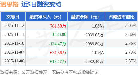 证券之星消息,11月12日,诺思格(301333)融资买入1859.28万元,融资偿还1097.49万元,融资净买入761.8万元,融资余额1.08亿元。