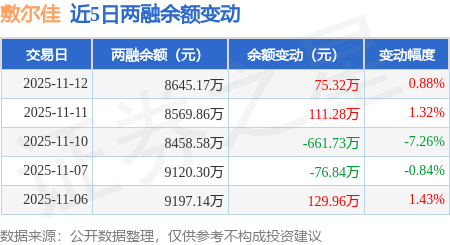 证券之星消息,11月12日,敷尔佳(301371)融资买入375.79万元,融资偿还299.77万元,融资净买入76.02万元,融资余额8606.92万元。