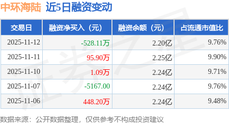 证券之星消息,11月12日,中环海陆(301040)融资买入599.48万元,融资偿还1127.59万元,融资净卖出528.11万元,融资余额2.2亿元,近20个交易日中有11个交易日出现融资净买入。