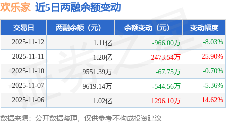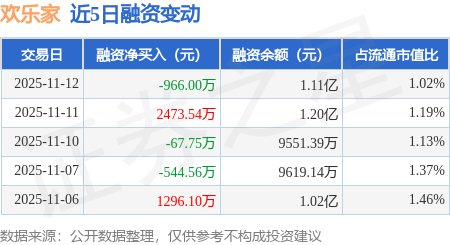 证券之星消息,11月12日,欢乐家(300997)融资买入1.08亿元,融资偿还1.18亿元,融资净卖出966.0万元,融资余额1.11亿元。