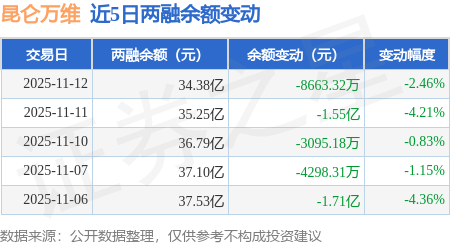 证券之星消息,11月12日,昆仑万维(300418)融资买入2.22亿元,融资偿还3.07亿元,融资净卖出8546.17万元,融资余额34.34亿元。