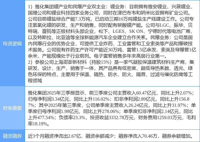 证券之星消息,雅化集团11月13日涨停收盘,收盘价22.08元。该股于10点21分涨停,4次打开涨停,截止收盘封单资金为5058.44万元,占其流通市值0.22%。