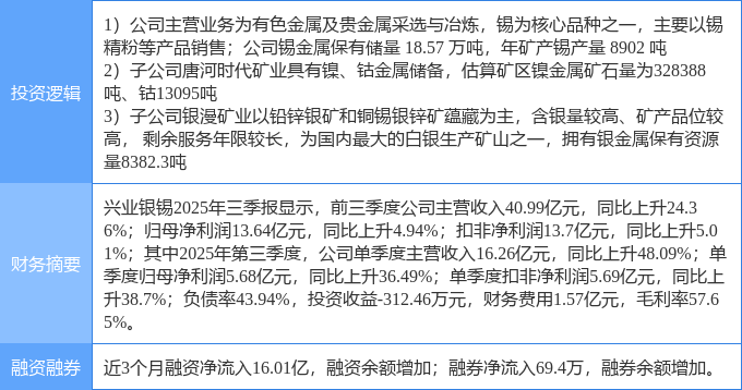 该股为有色 · 锡,有色 · 钴,白银概念热股,当日有色 · 锡概念上涨7.81%,有色 · 钴概念上涨5.13%,白银概念上涨5.07%。