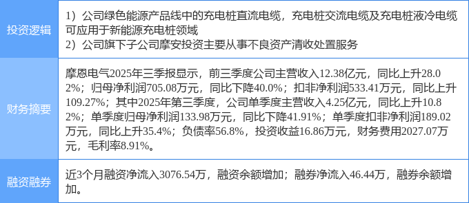 证券之星消息,摩恩电气11月13日涨停收盘,收盘价15.19元。该股于9点59分涨停,21次打开涨停,截止收盘封单资金为4432.09万元,占其流通市值0.66%。