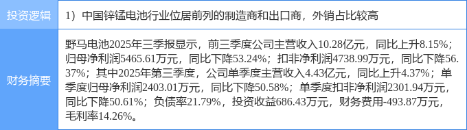 证券之星消息,野马电池11月13日涨停收盘,收盘价27.51元。该股于9点44分涨停,1次打开涨停,截止收盘封单资金为5836.9万元,占其流通市值0.81%。