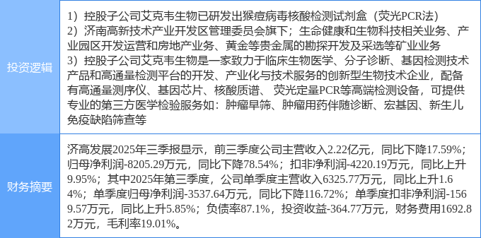 该股为山东国企改革,基因测序,猴痘概念概念热股,当日山东国企改革概念上涨1.36%,基因测序概念上涨1.23%,猴痘概念概念上涨1.18%。