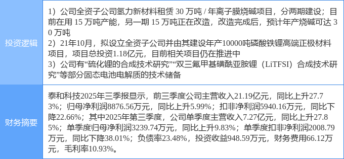 该股为磷酸铁锂,固态电池,烧碱概念热股,当日磷酸铁锂概念上涨5.76%,固态电池概念上涨4.57%,烧碱概念上涨3.67%。