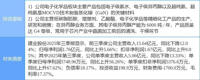 该股为异丙醇,第三代半导体,氮化镓概念热股,当日异丙醇概念上涨5.39%,第三代半导体概念上涨1.03%,氮化镓概念上涨0.99%。