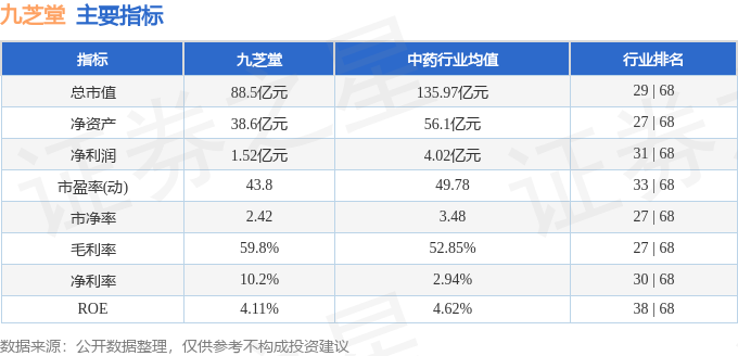 九芝堂2025年三季报显示,前三季度公司主营收入16.27亿元,同比下降21.13%;归母净利润1.52亿元,同比下降36.94%;扣非净利润1.31亿元,同比下降39.62%;其中2025年第三季度,公司单季度主营收入3.63亿元,同比下降5.51%;单季度归母净利润775.8万元,同比下降78.3%;单季度扣非净利润-502.81万元,同比下降118.77%;负债率22.77%,投资收益2001.09万元,财务费用-188.1万元,毛利率59.8%。九芝堂(000989)主营业务:以中药研发、生产和销售等业务为核心,逐步探索布局干细胞、中医医疗健康服务、药食同源系列大健康产品等创新业务。