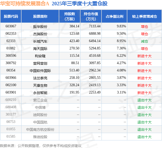 根据2025基金Q3季报公募基金重仓股数据,重仓该股的公募基金共8家,其中持有数量最多的公募基金为华宝基金的华宝可持续发展混合A。华宝可持续发展混合A目前规模为5.12亿元,最新净值1.0678(11月12日),较上一交易日下跌1.52%,近一年上涨30.67%。该公募基金现任基金经理为贺喆。贺喆在任的基金产品包括:华宝制造股票,管理时间为2018年8月24日至今,期间收益率为166.18%;华宝研究精选混合,管理时间为2021年12月21日至今,期间收益率为1.76%。