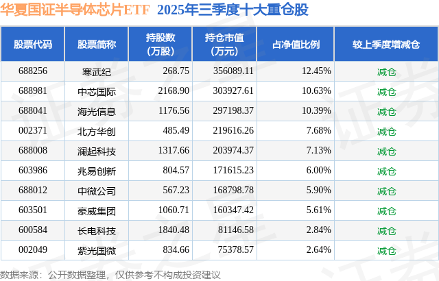 华夏国证半导体芯片ETF的前十大重仓股如下: