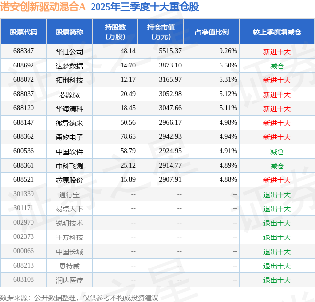 诺安创新驱动混合A的前十大重仓股如下: