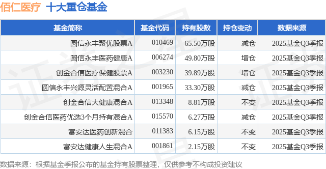 重仓佰仁医疗的公募基金请见下表: