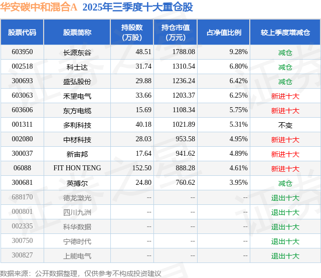 根据2025基金Q3季报公募基金重仓股数据,重仓该股的公募基金共1家,其中持有数量最多的公募基金为华安基金的华安碳中和混合A。华安碳中和混合A目前规模为1.54亿元,最新净值1.118(11月12日),较上一交易日下跌1.91%,近一年上涨27.73%。该公募基金现任基金经理为蒋璆。蒋璆在任的基金产品包括:华安动态灵活配置混合A,管理时间为2015年6月16日至今,期间收益率为179.14%;华安制造先锋混合A,管理时间为2018年12月25日至今,期间收益率为267.17%;华安创业板两年定开混合,管理时间为2020年9月3日至今,期间收益率为87.32%;华安成长先锋混合A,管理时间为2021年2月23日至今,期间收益率为10.91%。