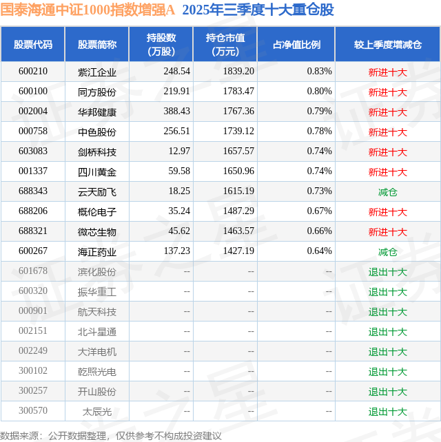 根据2025基金Q3季报公募基金重仓股数据,重仓该股的公募基金共5家,其中持有数量最多的公募基金为国泰海通资管的国泰海通中证1000指数增强A。国泰海通中证1000指数增强A目前规模为11.28亿元,最新净值1.4544(11月12日),较上一交易日下跌0.79%,近一年上涨32.86%。该公募基金现任基金经理为胡崇海 刘晟。胡崇海在任的基金产品包括:国泰海通中证500指数增强A,管理时间为2021年12月15日至今,期间收益率为29.02%;国泰海通量化选股混合发起A,管理时间为2022年8月18日至今,期间收益率为47.02%;国泰海通沪深300指数增强发起A,管理时间为2023年4月19日至今,期间收益率为27.57%。刘晟在任的基金产品包括:国泰海通科技创新精选三个月持有股票发起A,管理时间为2025年8月20日至今,期间收益率为5.31%;国泰海通君得盈债券A,管理时间为2025年9月9日至今,期间收益率为1.04%;国泰海通新锐量化选股混合A,管理时间为2025年10月29日至今,期间收益率为-2.06%。