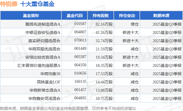 根据2025基金Q3季报公募基金重仓股数据,重仓该股的公募基金共19家,其中持有数量最多的公募基金为鹏扬基金的鹏扬先进制造混合A。鹏扬先进制造混合A目前规模为5.15亿元,最新净值0.7933(11月12日),较上一交易日下跌1.22%,近一年上涨17.23%。该公募基金现任基金经理为张勋。张勋在任的基金产品包括:鹏扬泓利债券A,管理时间为2024年7月29日至今,期间收益率为10.36%;鹏扬数字经济先锋混合A,管理时间为2024年8月27日至今,期间收益率为126.19%;鹏扬产业智选一年持有混合A,管理时间为2024年12月20日至今,期间收益率为22.41%。