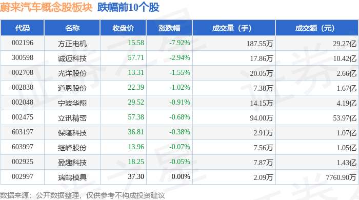 从资金流向上来看,当日蔚来汽车概念股板块主力资金净流出7.18亿元,游资资金净流出1.82亿元,散户资金净流入8.99亿元。蔚来汽车概念股板块个股资金流向见下表: