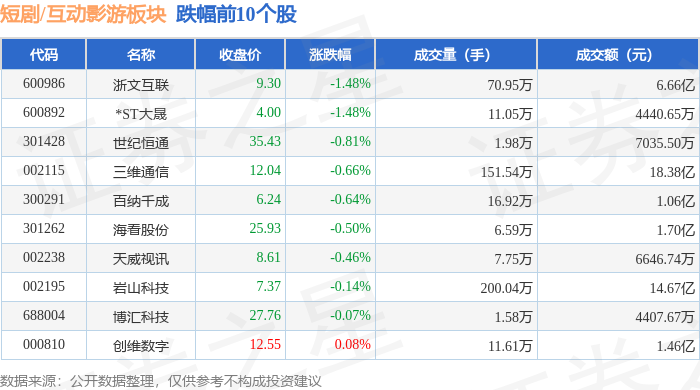 证券之星消息,11月13日短剧/互动影游板块较上一交易日上涨0.45%,因赛集团领涨。当日上证指数报收于4029.5,上涨0.73%。深证成指报收于13476.52,上涨1.78%。短剧/互动影游板块个股涨跌见下表: