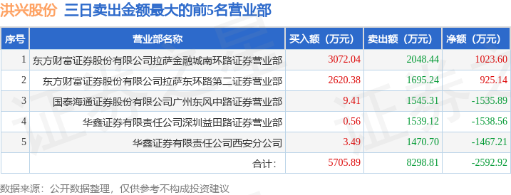 证券之星消息,沪深交易所2025年11月13日公布的交易公开信息显示,洪兴股份(001209)因连续三个交易日内,跌幅偏离值累计达到20%的证券登上龙虎榜。此次是近5个交易日内第4次上榜。