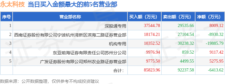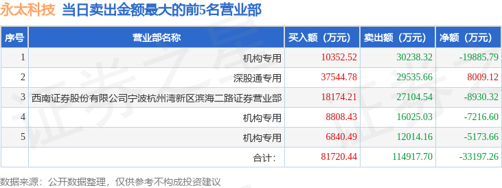 从龙虎榜公布的当日买卖数据来看,机构合计净卖出3.23亿元,北向资金合计净买入8009.12万元。