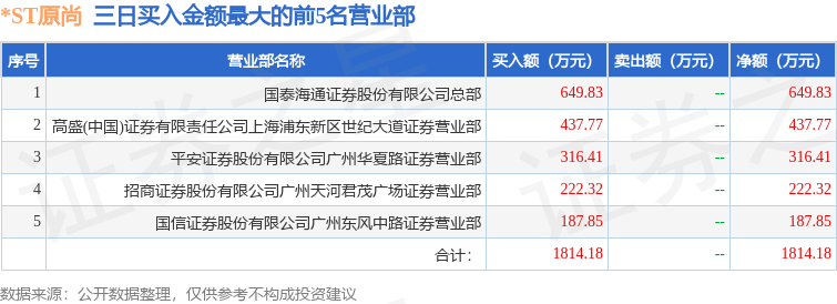证券之星消息,沪深交易所2025年11月13日公布的交易公开信息显示,*ST原尚(603813)因ST、*ST证券连续三个交易日内收盘价格涨幅偏离值累计达到12%的证券登上龙虎榜。此次是近5个交易日内第2次上榜。