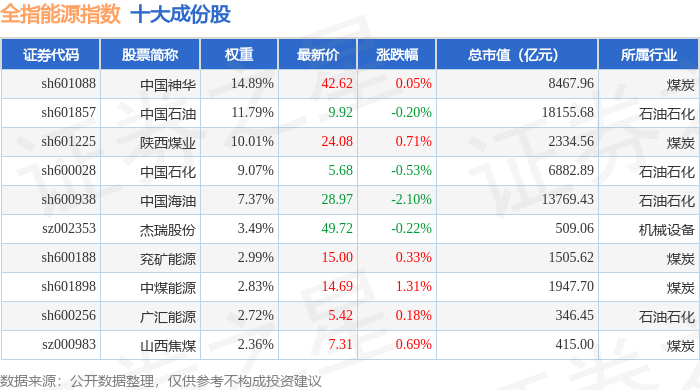 资金流向方面,全指能源(000986)指数成份股当日主力资金净流出合计4.1亿元,游资资金净流入合计6565.81万元,散户资金净流入合计3.45亿元。成份股资金流向详情见下表: