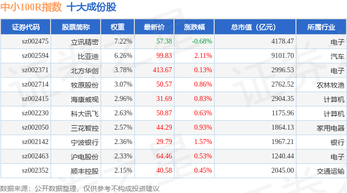 中小100R(399333)指数十大成份股详情如下: