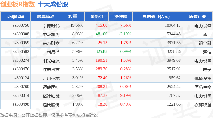 资金流向方面,创业板R(399606)指数成份股当日主力资金净流入合计57.19亿元,游资资金净流出合计43.13亿元,散户资金净流出合计14.05亿元。成份股资金流向详情见下表: