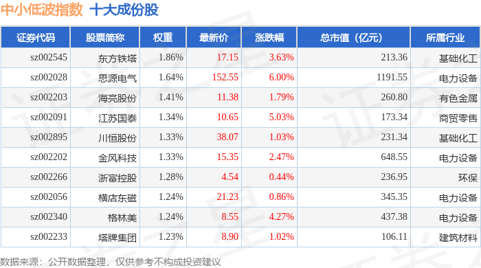 证券之星消息,11月13日,中小低波(399663)指数报收于2041.08点,涨1.11%,成交472.25亿元,换手率1.29%。当日该指数成份股中,上涨的有72家,九阳股份以10.05%的涨幅领涨,下跌的有25家,中国广核以2.18%的跌幅领跌。
