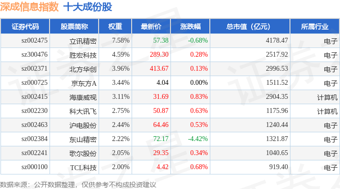 深成信息(399687)指数十大成份股详情如下: