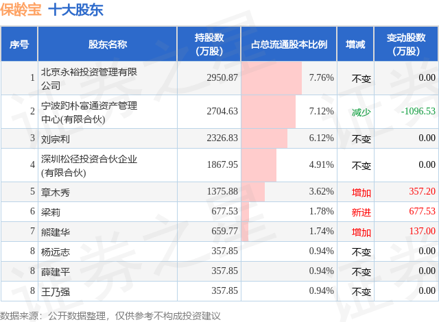 根据保龄宝2025年三季报公布的十大股东详情如下: