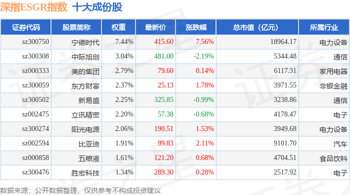 深指ESGR(470026)指数十大成份股详情如下: