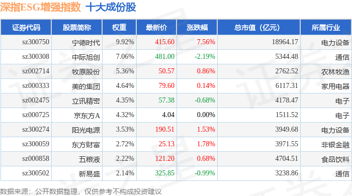 深指ESG增强(970032)指数十大成份股详情如下: