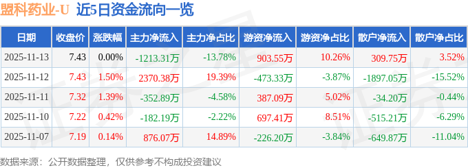 证券之星消息,截至2025年11月13日收盘,盟科药业(688373)报收于7.43元,上涨0.0%,换手率2.27%,成交量11.92万手,成交额8807.06万元。