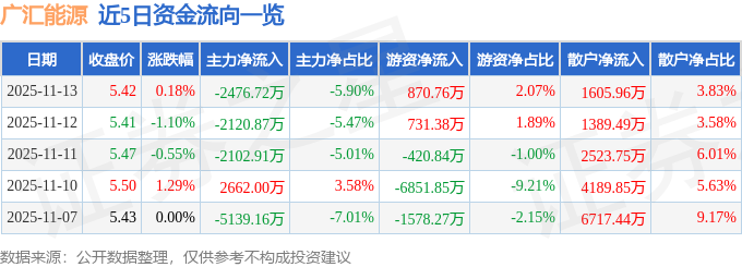 证券之星消息,截至2025年11月13日收盘,广汇能源(600256)报收于5.42元,上涨0.18%,换手率1.22%,成交量77.87万手,成交额4.2亿元。