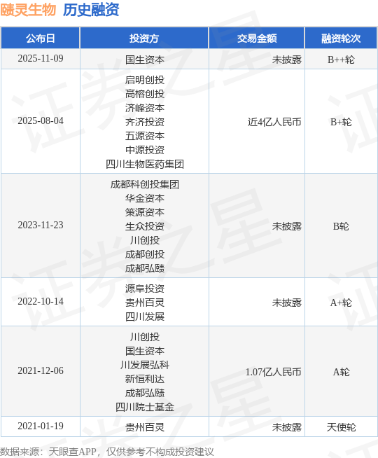 证券之星消息,根据天眼查APP于11月9日公布的信息整理,成都赜灵生物医药科技有限公司B++轮融资,融资额未披露,参与投资的机构包括国生资本。