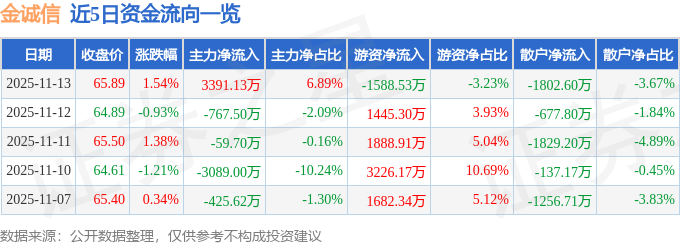 11月13日的资金流向数据方面,主力资金净流入3391.13万元,占总成交额6.89%,游资资金净流出1588.53万元,占总成交额3.23%,散户资金净流出1802.6万元,占总成交额3.67%。