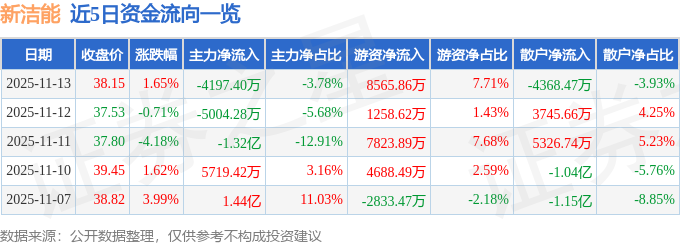 11月13日的资金流向数据方面,主力资金净流出4197.4万元,占总成交额3.78%,游资资金净流入8565.86万元,占总成交额7.71%,散户资金净流出4368.47万元,占总成交额3.93%。