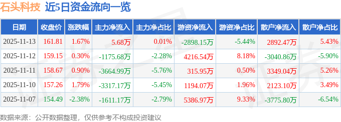 证券之星消息,截至2025年11月13日收盘,石头科技(688169)报收于161.81元,上涨1.67%,换手率1.26%,成交量3.27万手,成交额5.33亿元。