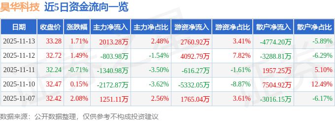 证券之星消息,截至2025年11月13日收盘,昊华科技(600378)报收于33.28元,上涨1.71%,换手率2.26%,成交量24.2万手,成交额8.1亿元。