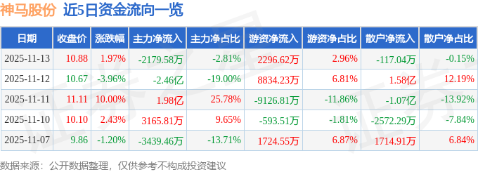 证券之星消息,截至2025年11月13日收盘,神马股份(600810)报收于10.88元,上涨1.97%,换手率7.03%,成交量71.75万手,成交额7.77亿元。