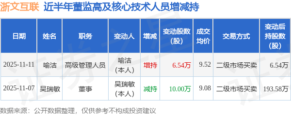 浙文互联近半年内的董监高及核心技术人员增减持详情如下: