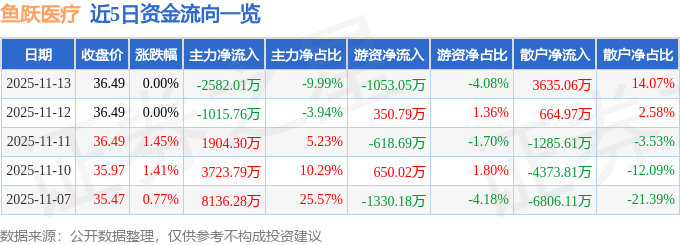 证券之星消息,截至2025年11月13日收盘,鱼跃医疗(002223)报收于36.49元,上涨0.0%,换手率0.76%,成交量7.1万手,成交额2.58亿元。