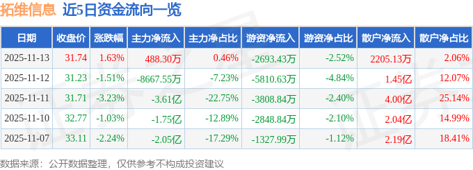 证券之星消息,截至2025年11月13日收盘,拓维信息(002261)报收于31.74元,上涨1.63%,换手率2.97%,成交量34.0万手,成交额10.68亿元。